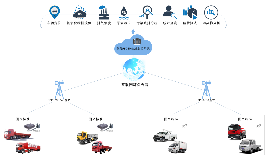 同陽科技推出的柴油貨車OBD在線監(jiān)測解決方案,通過在柴油貨車上安裝OBD并對其定位、里程、行程軌跡、氮氧化物排放、顆粒物排放、尿素消耗等數(shù)據(jù)實施在線監(jiān)控,來實現(xiàn)對柴油貨車的在線監(jiān)管、排放污染物分析、政策指導建議目的。