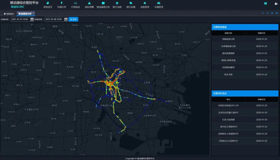 該系統(tǒng)可通過大數(shù)據(jù)分析功能識別城市的重點物流通道以及分析黑加油站點等功能,可為政府部門對限行規(guī)則和油品管控提供指導性意見。